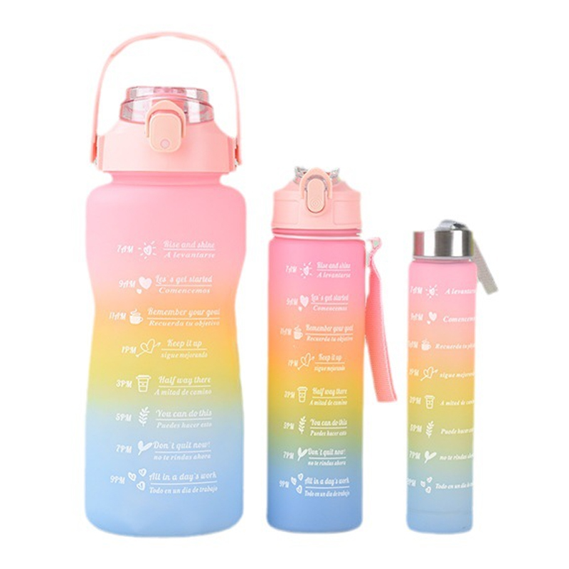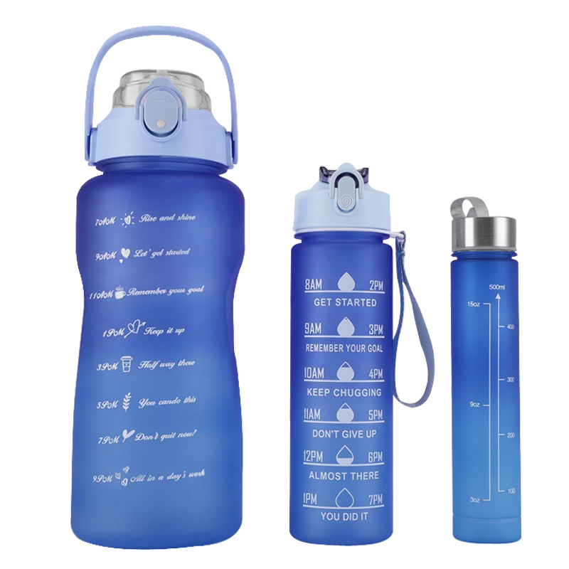200 मिलीलीटर कप में सुबह 7 बजे से रात 9 बजे तक के समय मार्करों और प्रेरक उद्धरणों के साथ एक हैंडल है, जो विस्तारित आउटडोर गतिविधियों या वर्कआउट के लिए बिल्कुल उपयुक्त है। 900 मिलीलीटर का कप एक लटकते हुए पट्टे के साथ आता है और प्रेरणादायक संदेशों के साथ सुबह 8 बजे से शाम 7 बजे तक के समय के पैमाने को प्रदर्शित करता है, जो इसे दैनिक उपयोग के लिए सुविधाजनक बनाता है और जलयोजन दिनचर्या को बनाए रखने में मदद करता है। स्पष्ट माप चिह्नों वाला कॉम्पैक्ट 300 मिलीलीटर कप छोटी यात्राओं या हल्की जलयोजन आवश्यकताओं के लिए आदर्श है।