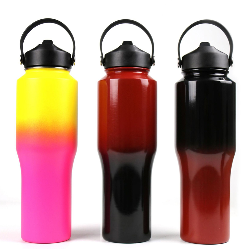 इन स्टेनलेस स्टील कप में आंखों को पकड़ने वाले डिजाइनों के साथ जीवंत ढाल रंग पट्टियाँ शामिल हैं। व्यावहारिक कप बॉडी डिज़ाइन, एक चिकना काले ढक्कन और हैंडल के साथ जोड़ा गया, उन्हें ले जाने में आसान बनाता है। दैनिक हाइड्रेशन की जरूरतों और बाहरी कारनामों के लिए बिल्कुल सही, ये कप कार्यात्मक कार्यक्षमता के साथ स्टाइलिश सौंदर्यशास्त्र को जोड़ते हैं।