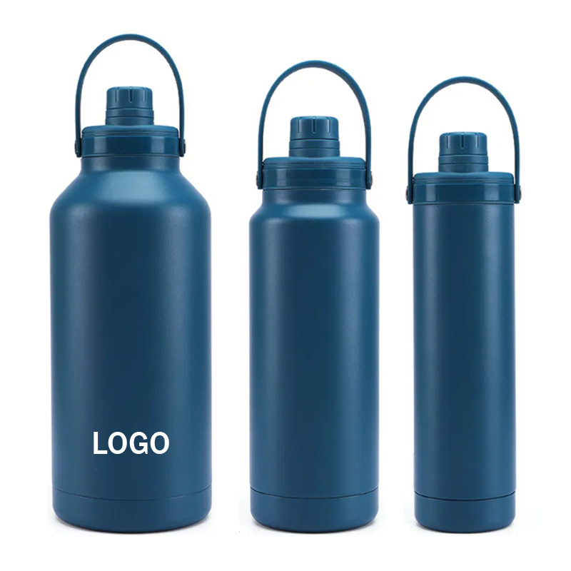 तीन आकारों में उपलब्ध नीली स्टेनलेस स्टील की पानी की बोतलों की हमारी श्रृंखला का परिचय। प्रत्येक बोतल में आसान परिवहन के लिए एक सुविधाजनक कैरी हैंडल है। बोतल को आपके लोगो के साथ अनुकूलित किया जा सकता है, जिससे यह ब्रांड प्रमोशन या वैयक्तिकरण के लिए एकदम सही है। बाहरी गतिविधियों, वर्कआउट या दैनिक आवागमन के दौरान हाइड्रेटेड रहने के लिए आदर्श, ये बोतलें एक चिकना डिजाइन के साथ कार्यक्षमता को जोड़ती हैं।