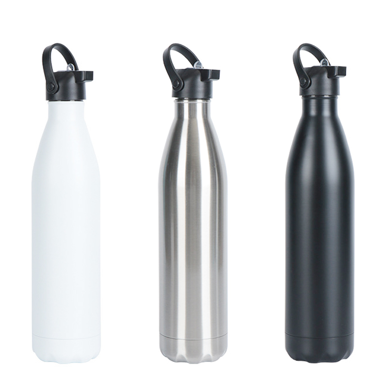 यह एक 750 मिलीलीटर स्टेनलेस स्टील की पानी की बोतल है। इसमें एक चिकना, धातु की उपस्थिति और आसान ले जाने के लिए टोपी पर एक काला हैंडल है, जो विभिन्न अवसरों जैसे बाहरी गतिविधियों या दैनिक उपयोग के लिए उपयुक्त है।