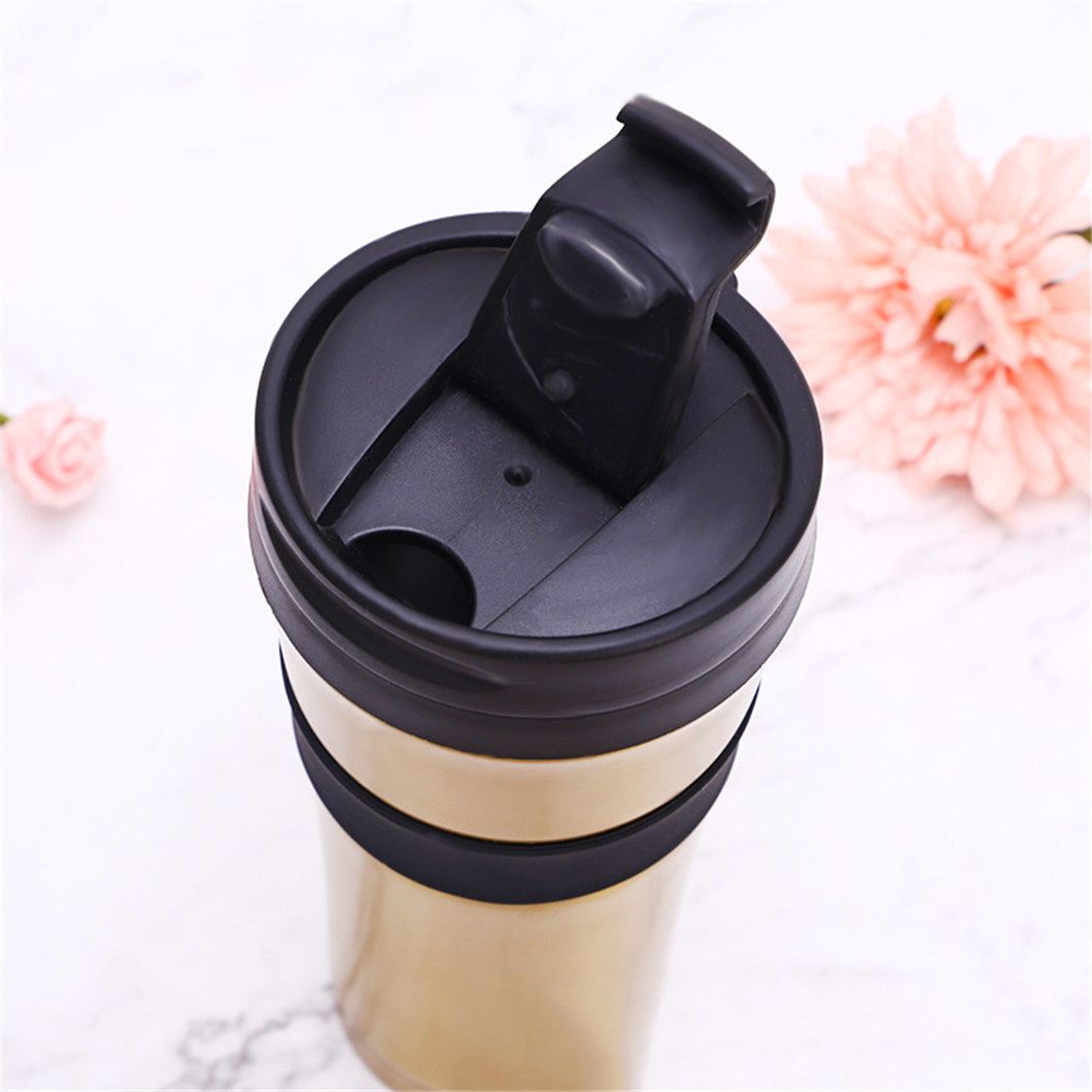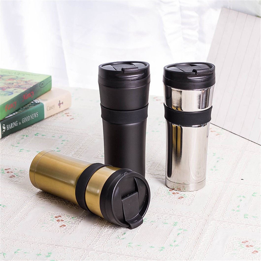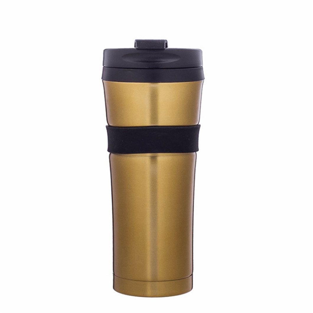 यह स्टेनलेस स्टील थर्मस सोने, काले और सिल्वर फिनिश में आता है, जिसमें अनुकूलन विकल्प उपलब्ध हैं। केंद्र में एक चिकना काले ढक्कन और एक टिकाऊ काले रबर की अंगूठी की विशेषता है जो फिसलने से रोकता है और कप को बचाता है, यह आपके दैनिक पेय जैसे कॉफी या गर्म पानी को ले जाने के लिए एकदम सही है।