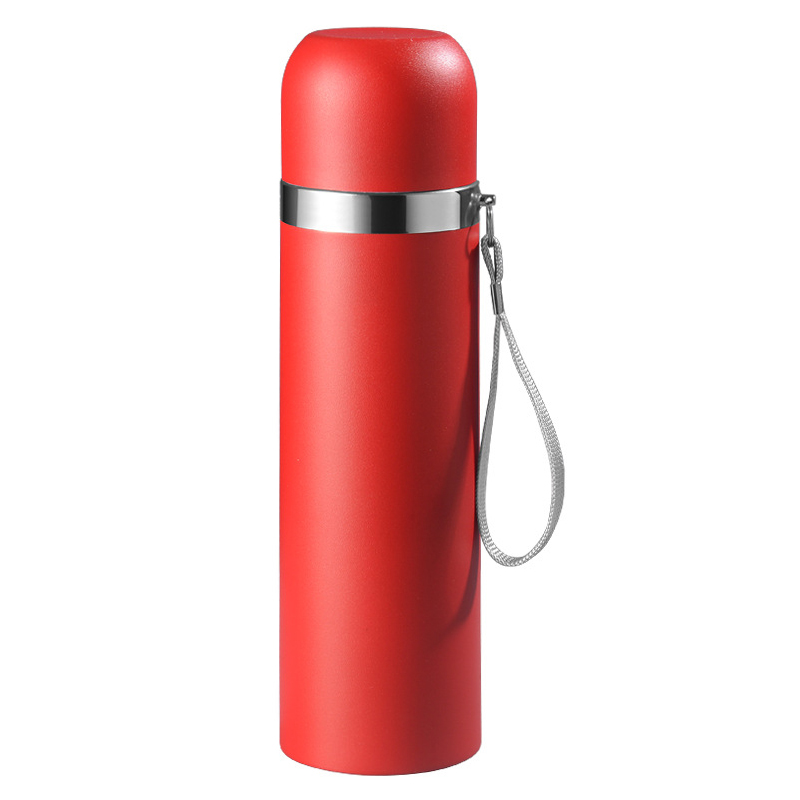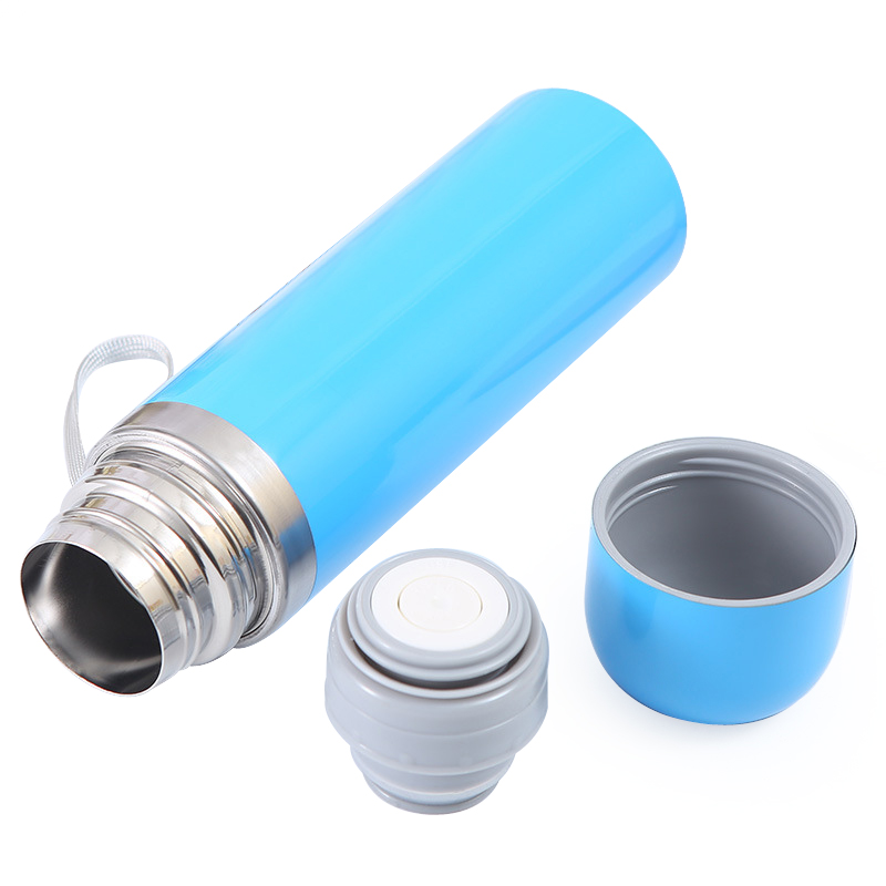 थर्मस फ्लास्क। इसकी ऊंचाई 24 सेमी है और इसका व्यास 6.8 सेमी है। इसमें गर्दन के चारों ओर एक स्टेनलेस स्टील की अंगूठी और एक ग्रे ले जाने वाला पट्टा है। थर्मस फ्लास्क एक सामान्य दैनिक उत्पाद है जिसका उपयोग तरल पदार्थों को गर्म या ठंडा रखने के लिए किया जाता है।